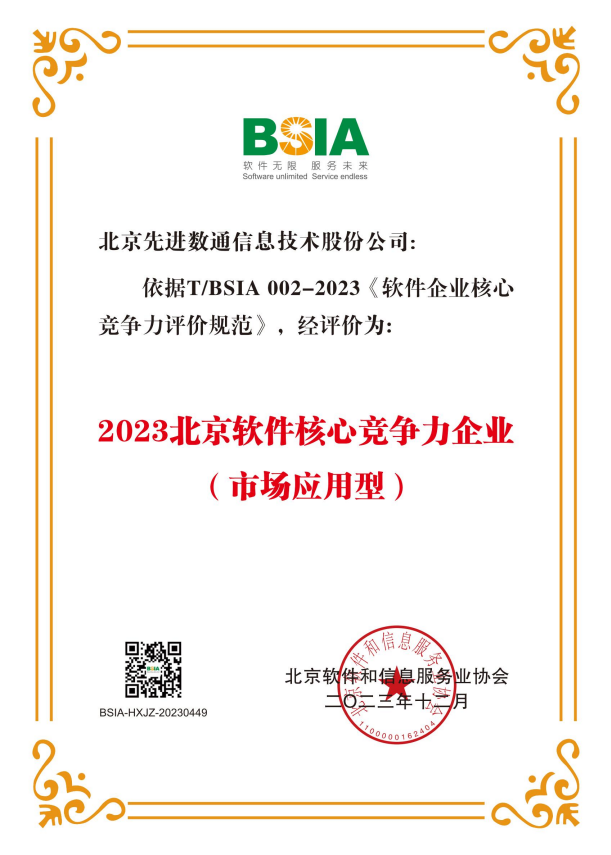 华宇拍卖app下载荣获“2023北京软件核心竞争力企业”荣誉_最新动态_新闻中心_华宇拍卖app下载